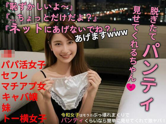 さっきまで履いていた脱ぎたてパンティを手に持って見せてくれる令和女子!!画面の向こうからパンティの温もりが伝わってきそうです!!